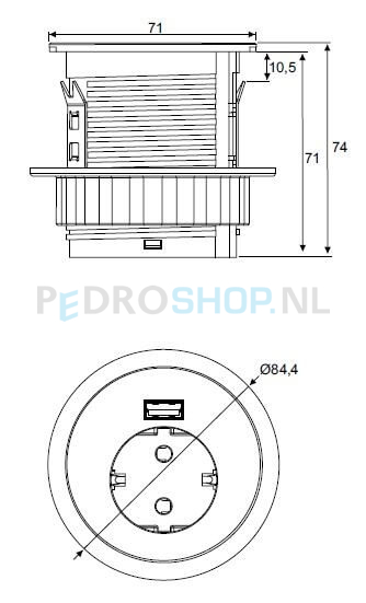 Spot is een compacte electrificatie inbouwmodule met directe toegang. Leverbaar in 2 kleuren: zwart en wit. Ø60mm boorgat.