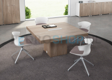 T45 meeting tafels met de kenmerkende dikke rand (85mm) leverbaar in diverse kleuren en met 2 verschillende onderstellen. Bladen inclusief 2-zijdig te openen kabeldoorvoerklep 45x12cm en kabelbak.