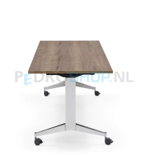 De Timmy-R klaptafel is extreem stevig en stabiel. Het mechaniek en de ontgrendelknop zijn netjes weggewerkt binnenin het H-frame voor optimale beenruimte en veiligheid. Uniek is tevens de standaard nivelleer-functie waarmee de bladen onderling gelijk gesteld kunnen worden. Timmy-R en Timmy-R smal zijn uit voorraad leverbaar in 5 kleuren en 2 lengtematen. De optionele zichtschotten zijn in 2 maten en 4 kleuren (ex. chroom) te bestellen.