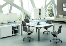 De exclusieve management-lijn van het Italiaanse Officity, strak en puur design. Massief aluminium frames in mat wit of mat donkergrijs (shadow grey) met 10mm dunne geprofileerde bladen van melamine, glas of gelakt hout. Levertijd 4-6 weken.