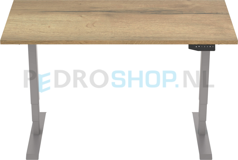 Elektrisch DSQ bureau EURO 120*80, aluminium grijze poot met halifax natuur eiken blad